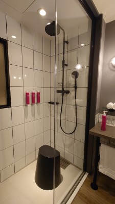 モクシー統一基準なんでしょうか、お風呂はシャワーだけです。上から落ちてくる大きいシャワーと、ハンドシャワーの2つがあります。