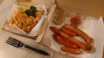 こちらは部屋飲みのおともにした唐揚げとソーセージ。